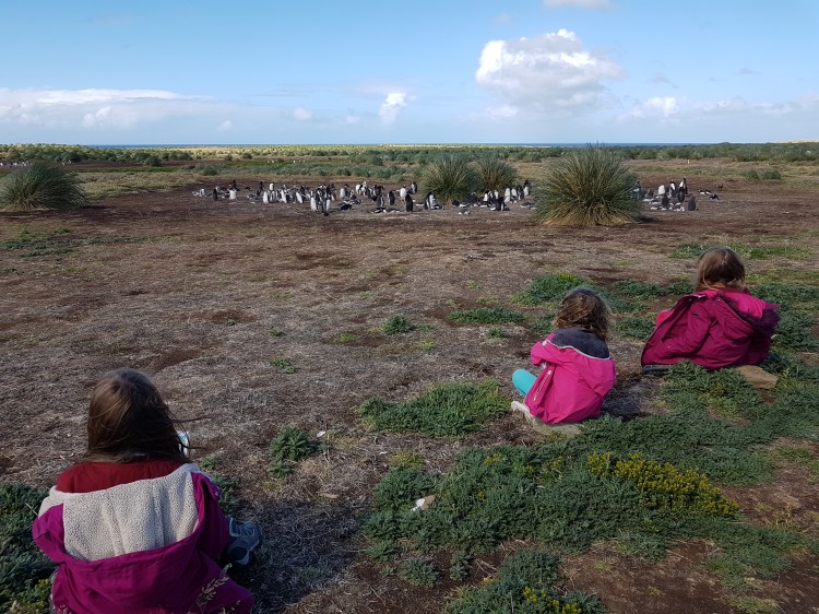 The girls seem to have an array of after school clubs on offer; drama, sewing, gardening and cooking have been undertaken with relish. They are also in the brownies, rainbows and guides, and eldest Barlow is part of the youth conservation watch group (#2 will be able to join in September which she can’t wait for!). All of the clubs are really proactive, there is always an event going on. The watch group meet twice a month, as well as having fundraisers and litter picking days. In February (our late summer) we had a family camp weekend with the watch group where we visited Cape Dolphin and Elephant beach, right on the northern tip of east Falkland. As well as a fabulous BBQ, we also took part in a beach clean amongst the penguins, and then habit restoration of blue grass planting. The girls are learning loads, as well as making friends from so many different backgrounds – at the camp there were a lot of families from MPC who we hadn’t met before, so was a great chance to meet other people.