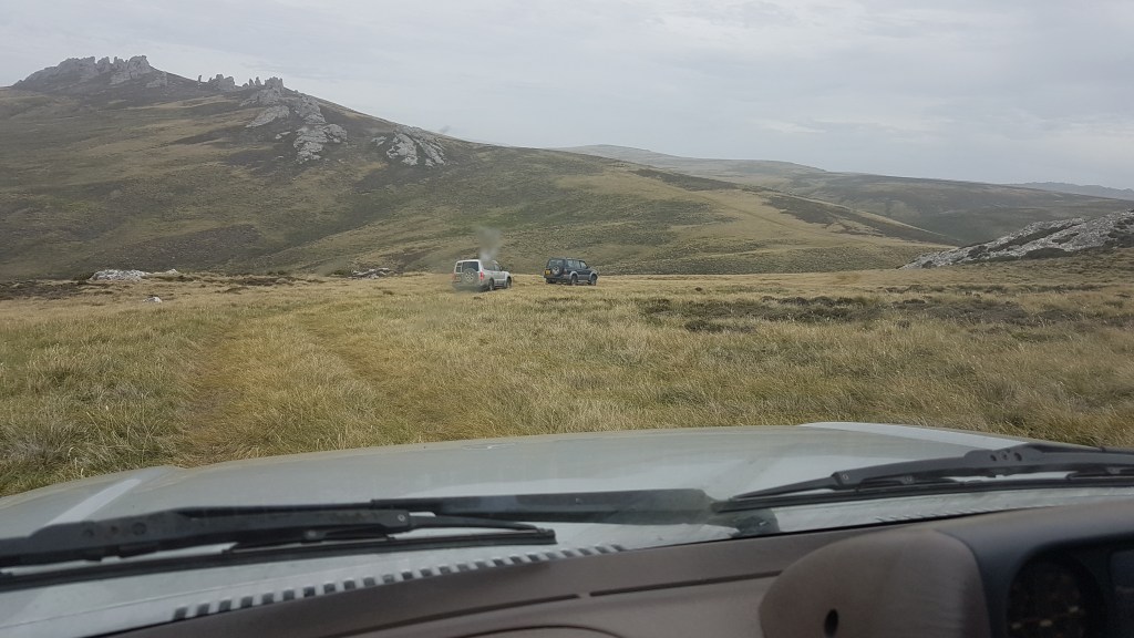 During the latter half of summer we also began to explore a bit further afield out of Stanley. I think we have become accustomed to the roads out here – so it can be easy to forget what a unique experience it could be driving out here. I think I’ve already mentioned, in Stanley itself, there is a 25mph speed limit, which basically covers all the residential areas as well as the town centre itself where the school, shops etc are. The road surface is mainly concrete, but pretty uneven. Then there is a main road which takes you out of Stanley, and into camp, as well as onto MPC – the military base. This I believe has been worked on a lot recently, and the majority of it is actually tarmacked up to MPC. As soon as you turn off it however, it turns into a variety of road types, from gravel, rocky, dirt, and then pretty much just field. As well as the watch group camp, we headed over to Port san Carlos to visit friends who were staying over there for a few nights in March. This was a pretty epic journey for us, the off roading was extreme (driving up the side of mountains, our first bogging incident) and one of the people we were with ended up coming off the road into a ditch – thankfully no people or cars were hurt. The road conditions do vary greatly out of town, as soon as you get off the MPC road, the road becomes gravel, which is actually really noisy to drive over, there’s also a section which has larger stones, the steering wheel vibrates so much that your hands hurt after a while. The speed limit on these roads is upto 40mph, but theres no way you can really get upto that speed without something probably falling off poor Ferdinand – so we had a more sedate time travelling over 😊